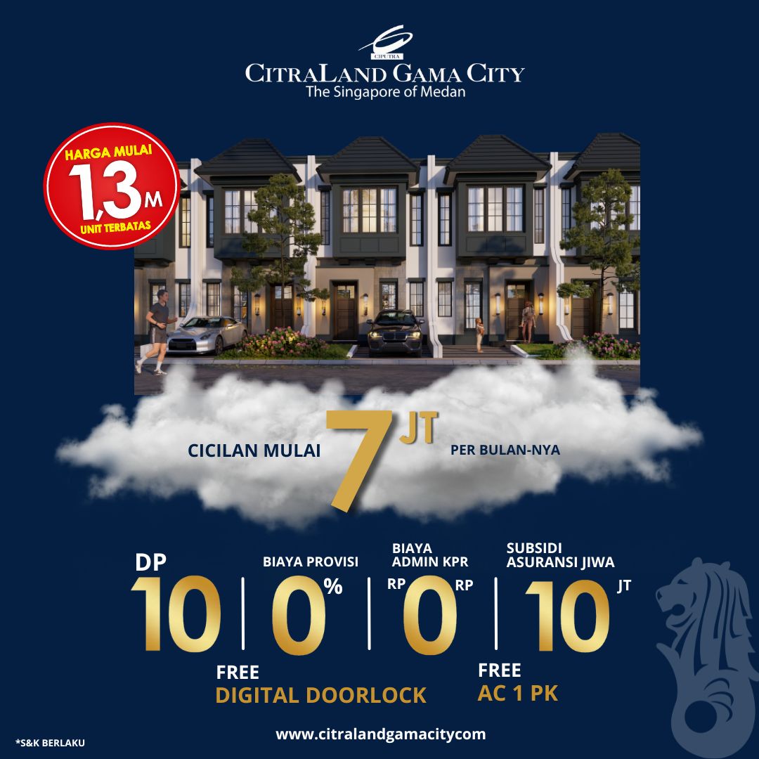 CitraLand Gama City Medan merupakan kota mandiri dengan berbagai fasilitas kota prestisius pertama yang mengintegrasi kawasan hunian eksklusif dengan mengusung konsep “The Singapore of Medan” melalui konsep hunian yang Clean, Green and Modern. Terintegrasi sempurna antara hunian asri dan kawasan bisnis strategis.